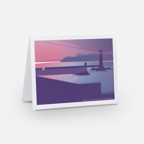 A gorgeous glossy note card of our Island Lavender design 'Rubha Nan Gall Lighthouse to Ardnamurchan'